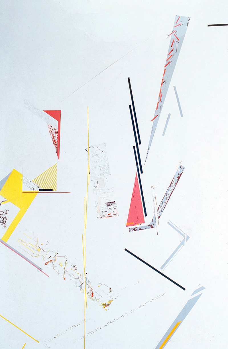 Dessin sur papier, Rotring, encre de chine, crayons de couleur et Collages